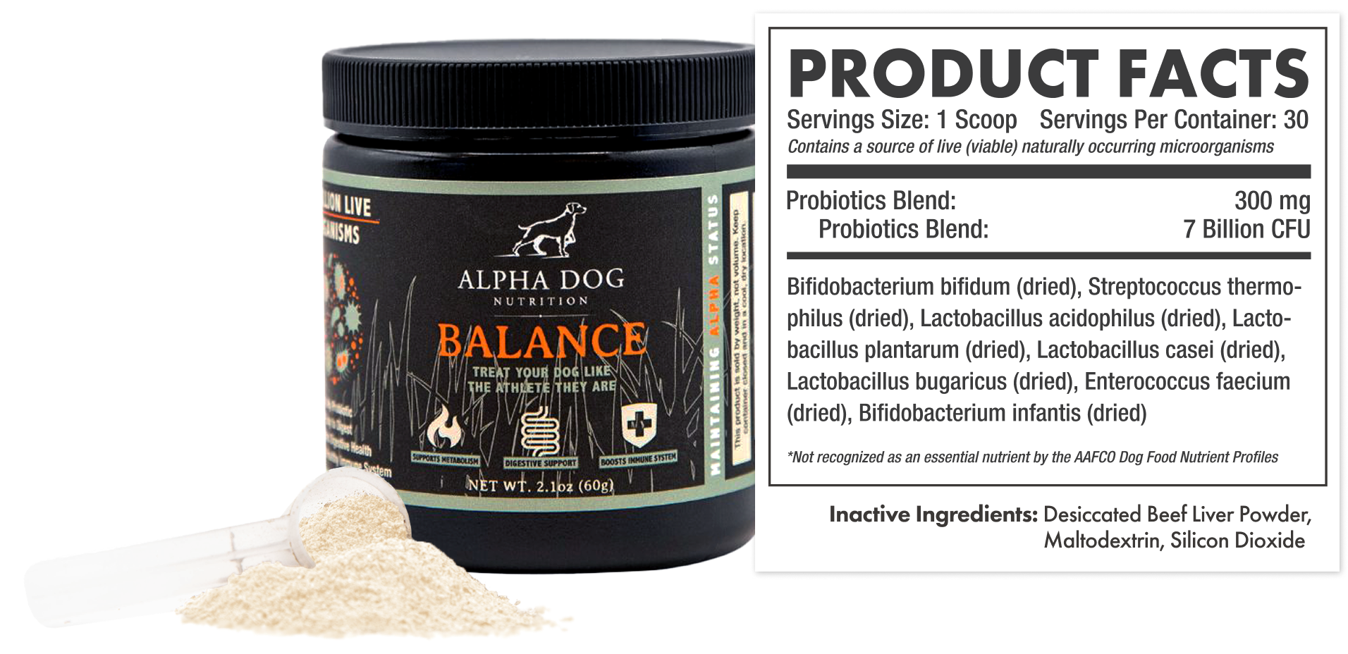 We’ve used several different probiotics and have settled on Alpha Dog Nutrition Balance. We give it to our dogs periodically or after any loose stools. Definitely recommend for anyone looking for a probiotic for their dog.